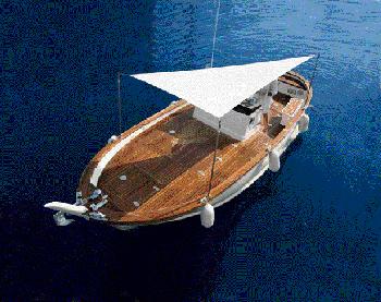 È stata l'evoluzione dello stile Sciallino. Presentato lo scorso anno, Goccia di Culti ha scafo in vetroresina rinforzato con strutture longitudinali e trasversali, ma coperta e finiture in teak finemente trattato e acciai satinati. Progettato e realizzato in collaborazione con il celebre brand di design e arredamento Culti, fa proprio del contrasto tra tradizione e lusso il suo punto di forza. Per effettuare navigazioni in assoluta tranquillità, Sciallino ha deciso di dotare Goccia di Culti di motorizzazioni sovradimensionate. Particolare il disegno dei tendalini a forma di vele triangolari, che possono essere tenuti anche in navigazione. La motorizzazione base prevista dal cantiere ligure è di due propulsori Yanmar da 110 cavalli ciascuno.